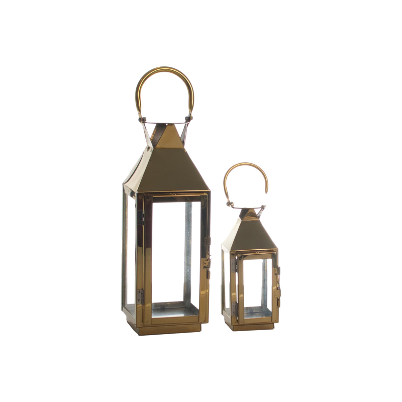 Home Catalogue Lanterns Lanterns – Gold Set 14″ & 8″